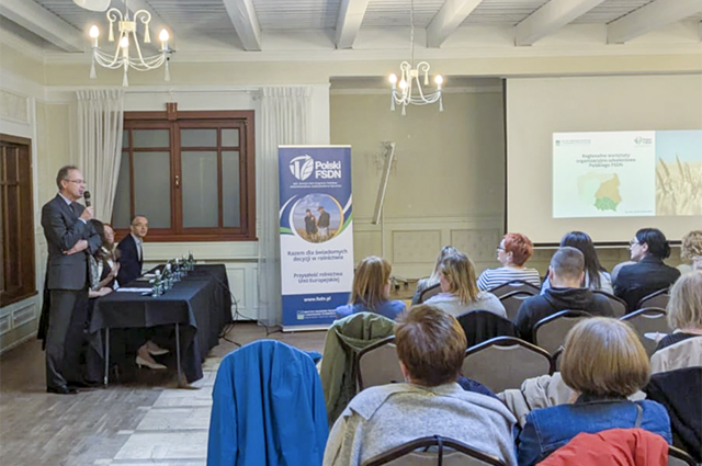 Podczas szkolenia pracownicy ZRGR omówili kluczowe zagadnienia związane z przekształceniem systemu FADN w FSDN. Monika Sapota, Audytorka ds. FSDN, podsumowała pierwszy rok gromadzenia danych w ramach Polskiego FSDN z punktu widzenia Audytora ds. FSDN. Zbigniew Floriańczyk, Kierownik ZRGR, zaprezentował perspektywę nowych rozwiązań informatycznych wspierających gromadzenie i przetwarzanie danych FSDN. Aleksandra Ruszczyk streściła plan działań promocyjnych, informacyjnych w kontekście przekształcenia FADN w FSDN. Adam Smolik, Kierownik Pracowni Metodyki i Szkolenia, przedstawił możliwe obszary rozwoju Polskiego FSDN, z podkreśleniem potencjału wykorzystania danych z zewnętrznych baz oraz omówił kwestie możliwego zakresu integracji.